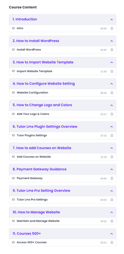 – You will get wordpress Ready Website template for selling courses (LMS)